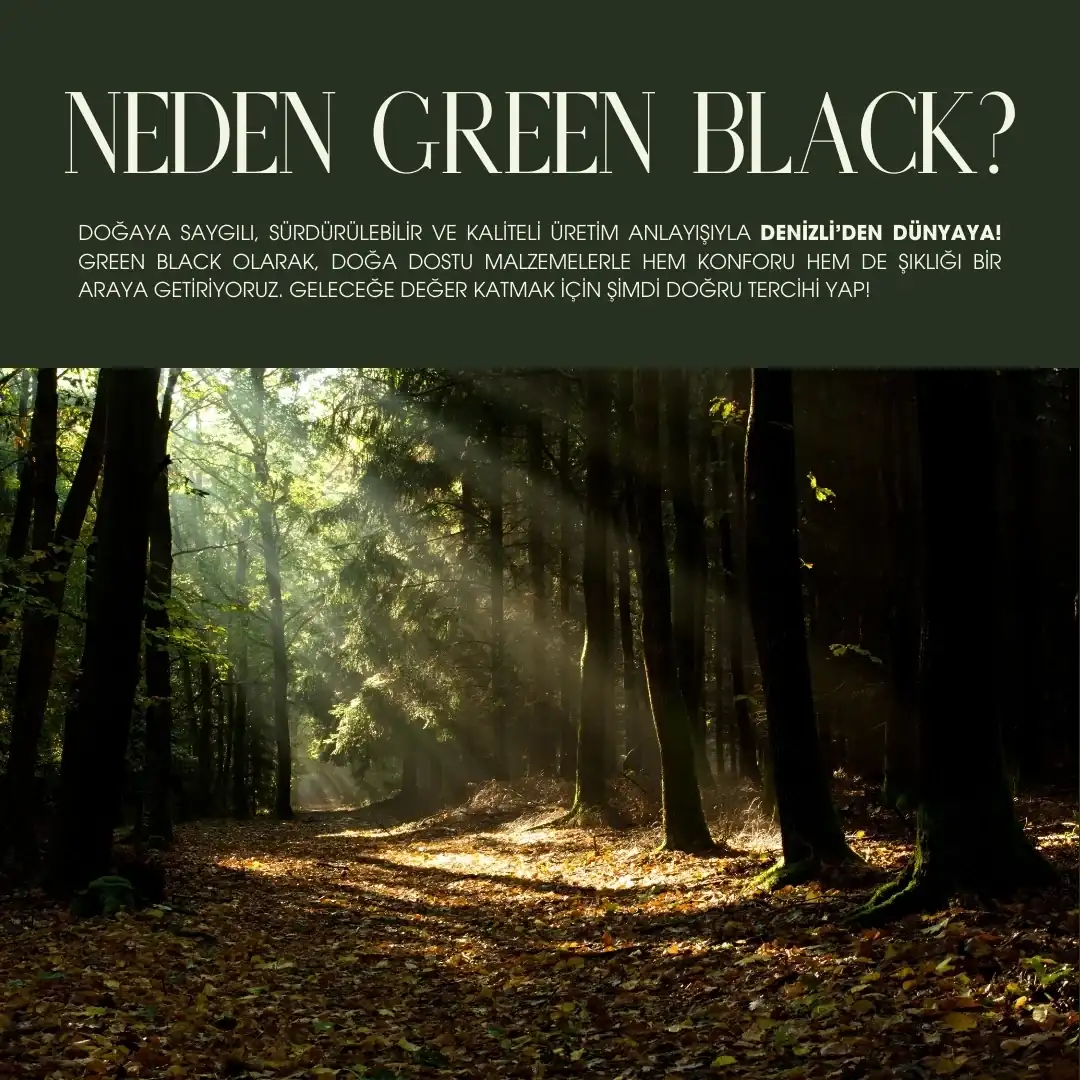 Her bir ürünümüz, özenle seçilmiş en kaliteli Ege pamuğundan elde edilerek, titiz bir üretim sürecinden geçmektedir. Green Black olarak, bu koleksiyonun her adımında kalitemizden ödün vermeden, siz değerli müşterilerimize en üst düzeyde hizmet sunmaktan gurur duyuyoruz. Üretim esnasında her detayı özenle planlayarak bu koleksiyonun her parçasında sizin konforunuz ve memnuniyetiniz için durmaksızın çalışıyoruz.